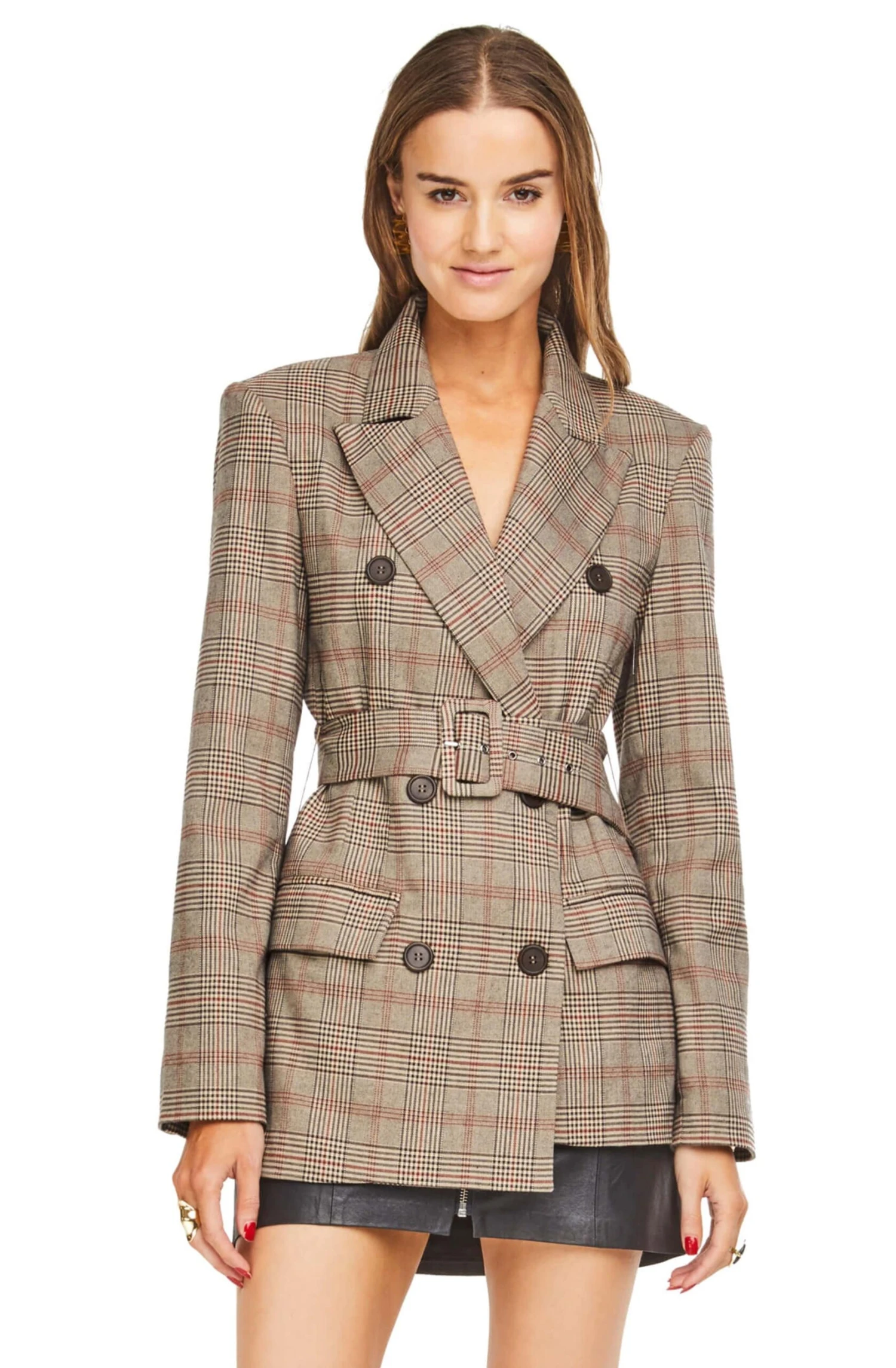 80% Polyester / 20% Viscose, Length: 30 3/4″ (Size M), Zipper Closure, Dry Clean Only, Plaid Blazer, Belted, Model is Wearing Size S, Model’s Measurements: Height 5’10” // Bust 34″ // Waist 24″ // Hips 34″, Fits True to Size, Style#ACT15012