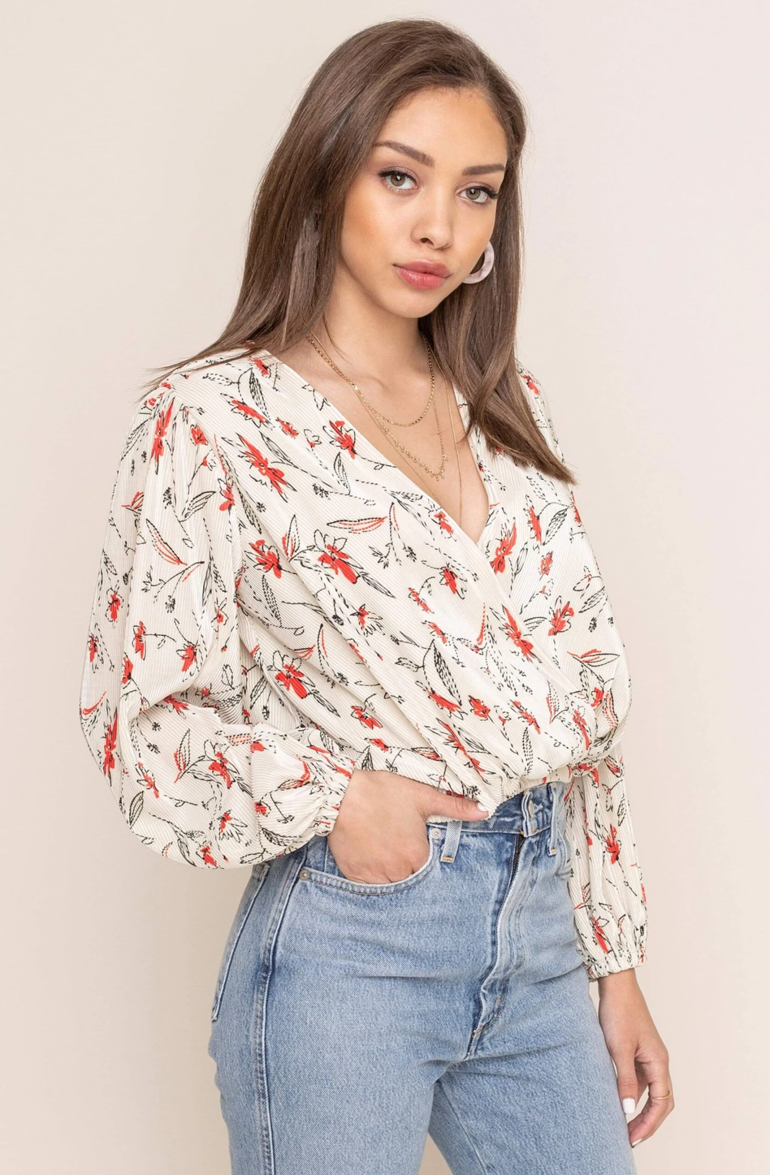 Be the first to review “Pleated Surplice Floral Long Sleeve Top” Cancel reply