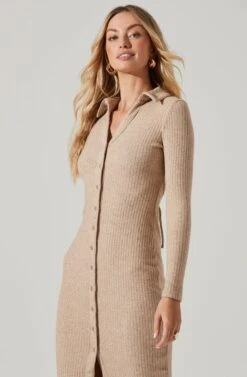 Bransbury Ribbed Knit Button Down Cutout Midi Dress