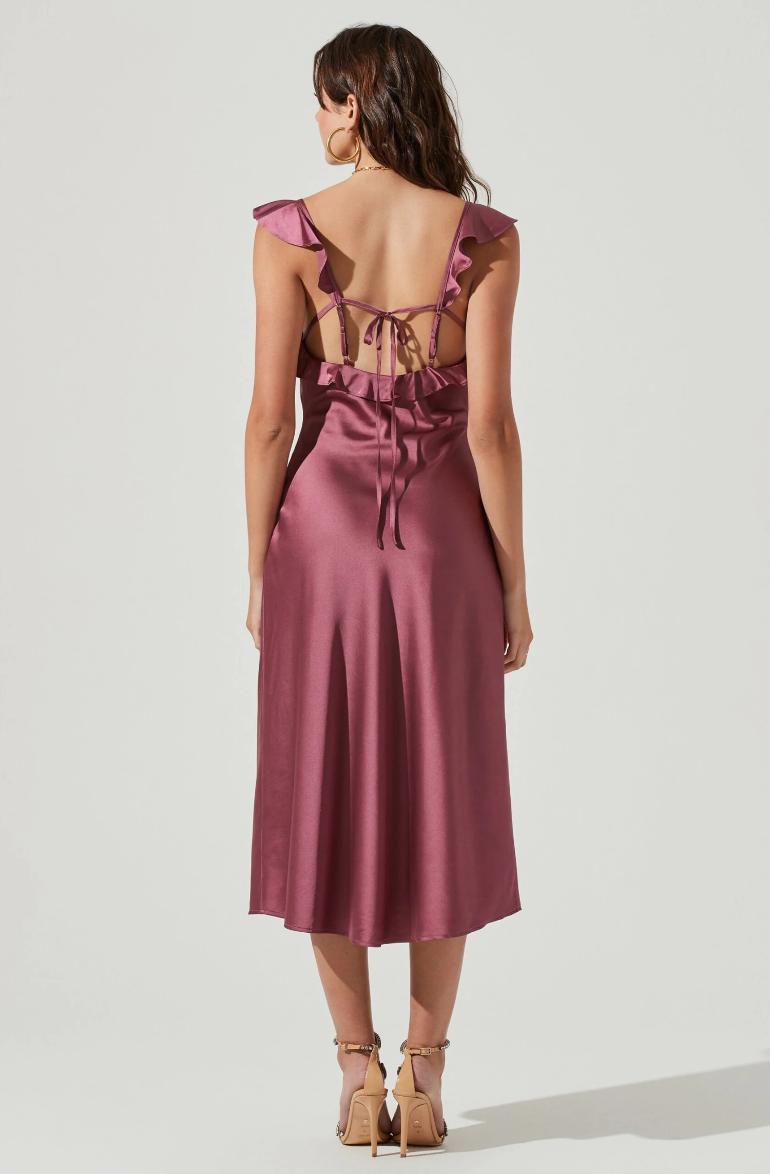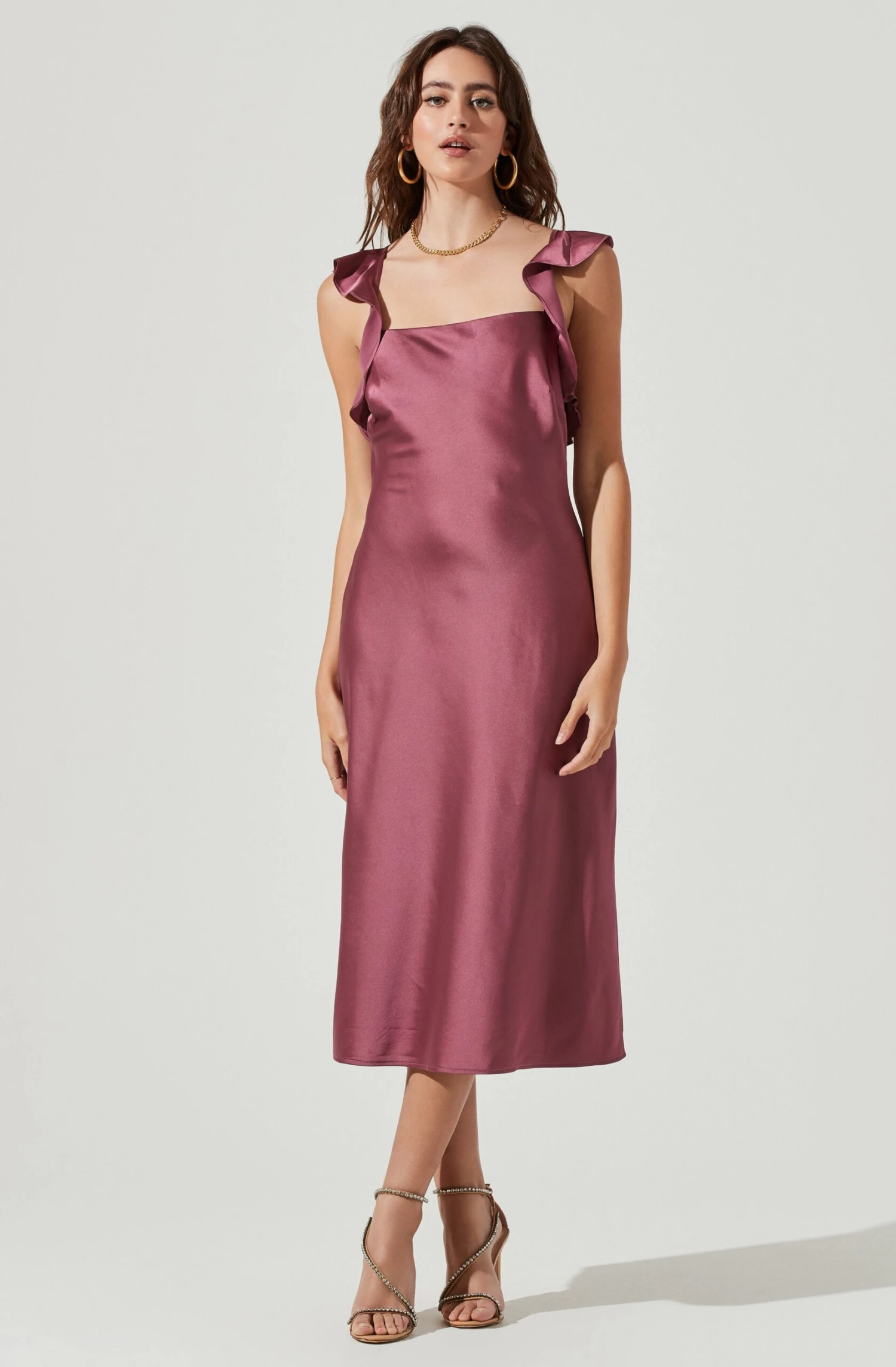 Be the first to review “Rina Ruffle Strap Satin Midi Dress” Cancel reply