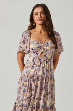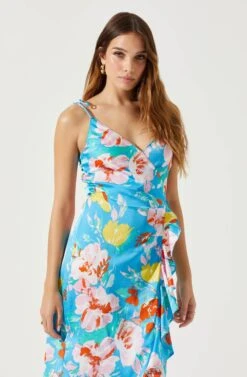 You’re a stunner in the Scarlet dress! It features a plunging neckline that leads to a twisted front and mini skirt. Long sleeves and statement floral print throughout.