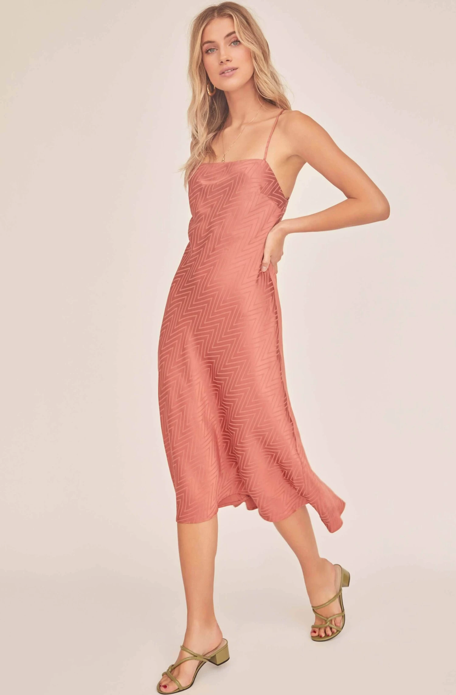 Night out looks but make it classy in the Trinity Chevron Midi Dress. It features a flattering square neckline supported by cross back straps. Fitted bodice leads to a flattering A-line skirt. Chevron stripe pattern.