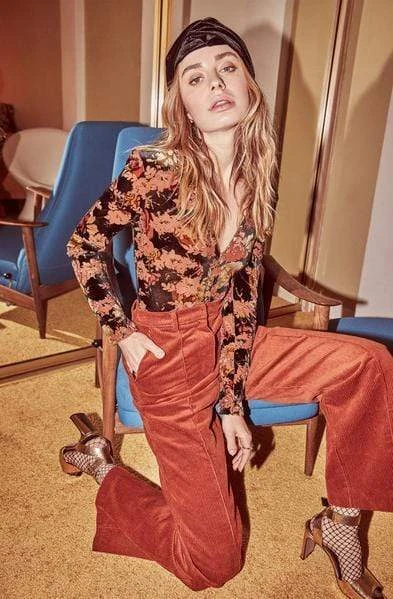 67% Polyester, Length: 27″ (Size M), Snap Button Closure, Dry Clean Only, Floral Long Sleeved Bodysuit, V-neck, Model is Wearing Size S, Model’s Measurements: Height 5’10” // Bust 34″ // Waist 24″ // Hips 34″, Fits True to Size, Style#ACT15038